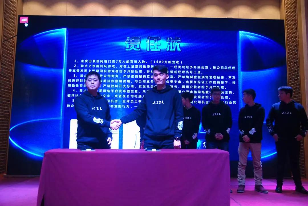 随后在王坚总经理的带领下,各部门负责人签订了2018年目标计划“责任状”。